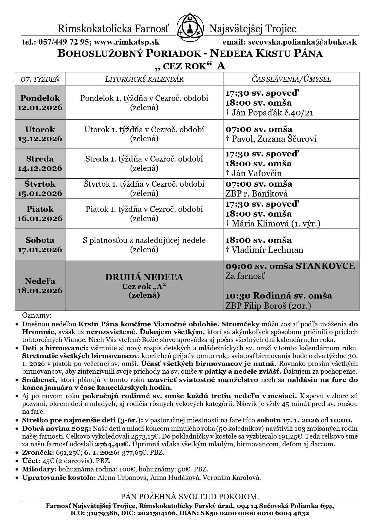 Bohoslužobný poriadok – Nedeľa krstu Pána „cez rok“ A